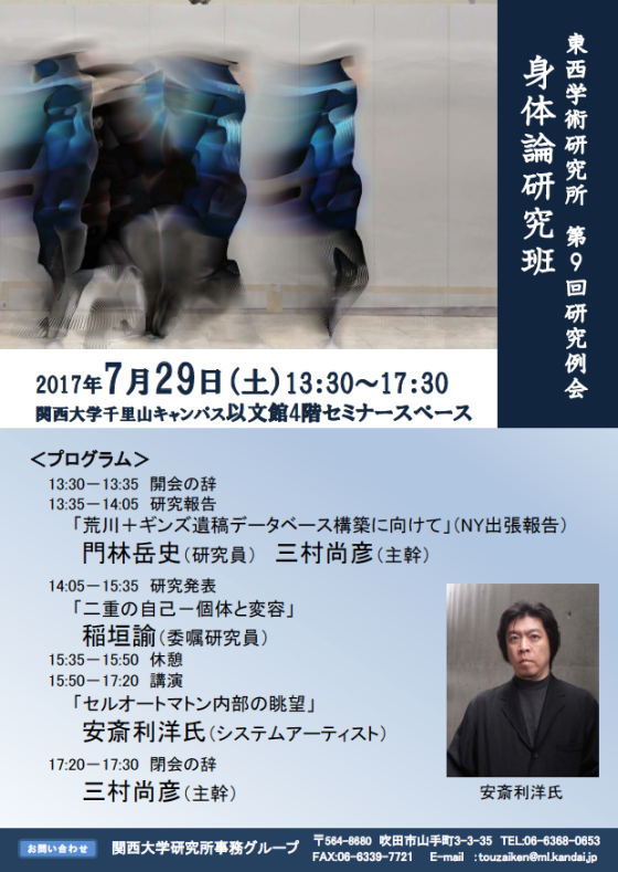 We are pleased to annouce you that the 4th open research conference @ Kansai University will be held on July 29th, inviting Toshihiro Anzai, System Artist. Please keep you posted on our activities @ http://arakawagins.noor.jp/2020agtokyo/?cat=53&lang=en
