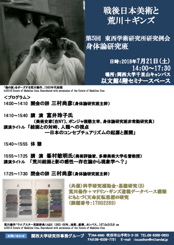 The 7th open research conference will be held on July 21 at the Kansai University (Osaka). There will be two keynote lectures, given by art historian Reiko Tomii, and Toshiaki Minemura, emeritus professor, Tama Art University. You can learn more about our activities @ http://arakawagins.noor.jp/2020agtokyo/?cat=53&lang=en