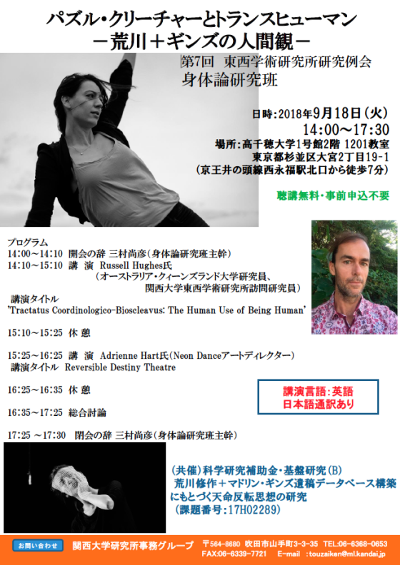 The 9th open research conference will be held on December 2, 2018 at the Kansai University (Osaka). There will be two keynote lectures, given by Haruchi Osaki, artist, and Russell Hughes, Researcher, The University of Queensland. You can learn more about our activities @ http://arakawagins.noor.jp/2020agtokyo/?cat=53&lang=en