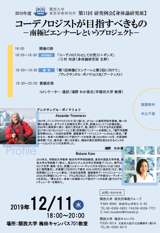 The 11th open research conference will be held on December 11, 2019 at the Kansai University (Osaka). There will be two keynote lectures, given by Naohiko Mimura, Professor, Kansai University and Alexander Evgenievich Ponomarev, artist.